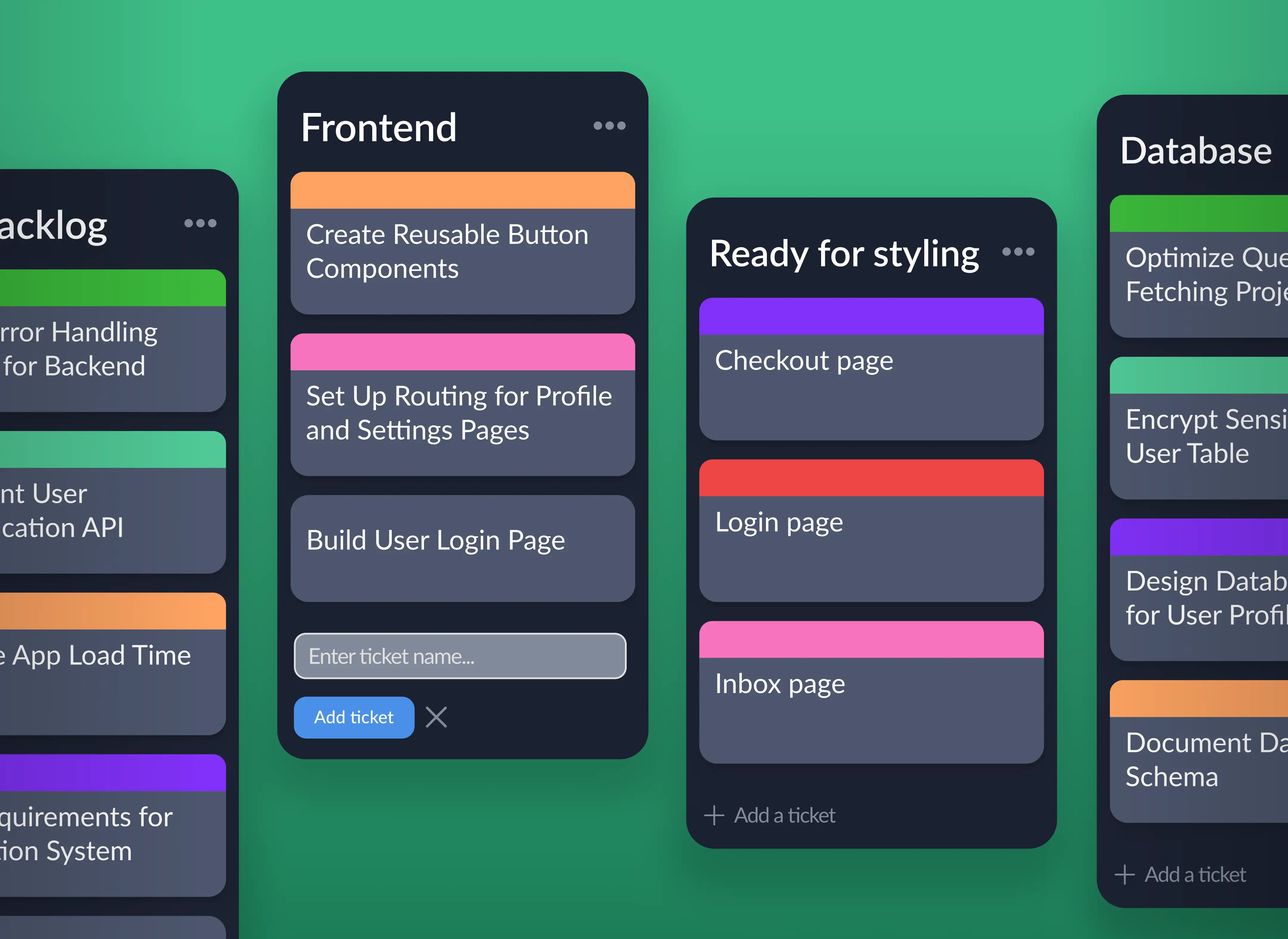 Ticketer is a kanban board app, allowing users to sign up, create and customize boards, lists, and tickets for their projects.